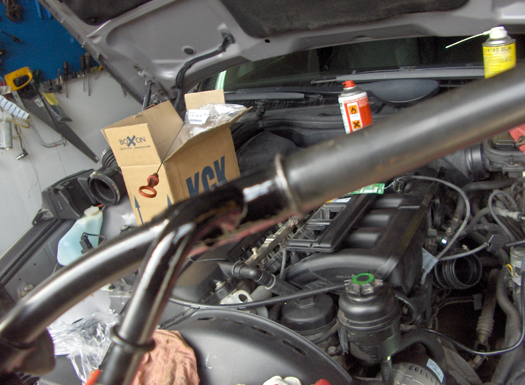 Rev ner vevhusventilationen på en E39 01,bilen led av igenkladdade rör och ledningar.